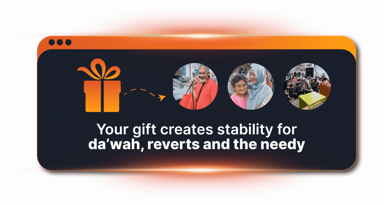 Earn continuous rewards: Every month, your infaq feeds families, supports da'wah and sustains the reverts community.